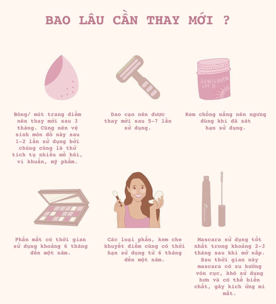 Các loại bông phấn, mút tán phấn là nơi tích tụ nhiều mồ hôi, bụi bẩn, vi khuẩn cùng các loại mỹ phẩm nên cần vệ sinh thường xuyên, tốt nhất nên xệ sinh 1 tuần/ lần và nên thay mới sau 3 tháng hoặc sớm hơn nếu có tần suất sử dụng dày đặc các nàng nhé.