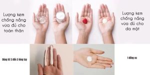 Bạn có thể hình dung lượng kem chống nắng đủ cho da mặt tương ứng với 1 đồng xu hoặc bơm đủ chiều dài của hai ngón tay.